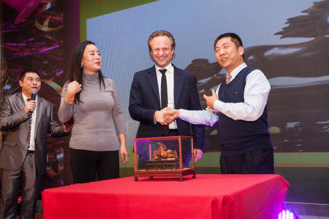 關(guān)愛,是918博天堂一直倡導(dǎo)的企業(yè)文化,關(guān)愛員工,關(guān)愛家人,關(guān)愛社會,關(guān)愛所有的孩子。慈善拍賣是歷年來918博天堂年會舞臺上獨(dú)有的一道風(fēng)景,也是所有員工和合作伙伴期待的特殊節(jié)目。本屆年會上,作為紅臉蛋基金會創(chuàng)始人,洪江游先生再次捐出個人珍藏多年的的兩件文化收藏品,分別是由中國著名象牙雕刻大師慕秋梅大師匠心打造的硨磲吉祥大擺件,以及寓意萬馬奔騰奮勇向前的海南黃花梨駿馬擺件。兩件藏品分別被公司合作伙伴與外國技術(shù)顧問現(xiàn)場競投成功,共籌集款項(xiàng)人民幣6萬元。該善款的30%將捐贈給專注于幫助貧困兒童身心健康成長的918博天堂紅臉蛋基金,其余則用于現(xiàn)場抽獎。當(dāng)紅臉蛋基金宣傳片感人的音樂響起,在洪江游董事長帶頭下,918博天堂高管們競相為紅臉蛋基金現(xiàn)場捐款,員工與嘉賓們亦紛紛慷慨解囊。