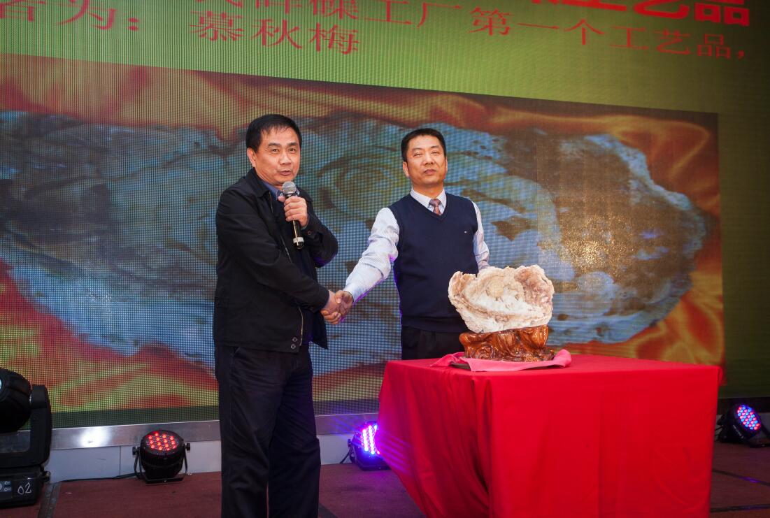 晚會上,除了精彩的水晶鼓和員工歌舞表演,董事長洪江游先生也大展歌喉,為大家獻(xiàn)唱一曲,將氣氛推向高潮。深情的演唱令員工們情緒高漲,接連上臺獻(xiàn)花。918博天堂副總裁李幽泉先生也在悠揚(yáng)的古箏伴奏中,登臺獻(xiàn)上墨寶,將“�!弊炙徒o大家。
