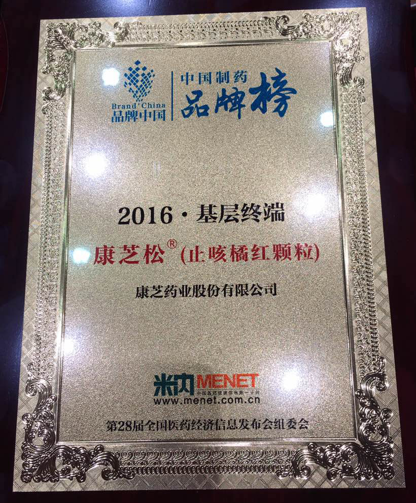 11月24日,“2016中國制藥?品牌榜”在第28屆全國醫(yī)藥經(jīng)濟(jì)信息發(fā)布會(huì)上揭曉,918博天堂旗下明星產(chǎn)品918博天堂松?(止咳橘紅顆粒)成功入選基層終端品牌榜榜單。918博天堂市場醫(yī)學(xué)部總監(jiān)劉湛先生受邀出席頒獎(jiǎng)典禮并受領(lǐng)獎(jiǎng)牌。