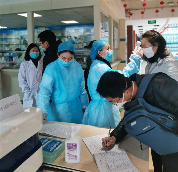 醫(yī)院嚴格按照疫情防控要求,將員工通道與患者通道分開,患者從門診大廳進入醫(yī)院,而醫(yī)護人員從側門進入醫(yī)院,不管是正門還是側門,都設立了發(fā)熱預檢點。醫(yī)護人員24小時值班,嚴防死守,不漏一人,對進入醫(yī)院的患者及家屬,醫(yī)護人員、后勤人員等在內(nèi)的所有人員進體溫測量,及時識別可疑病例,做到“早發(fā)現(xiàn)、早報告、早隔離、早治療”。