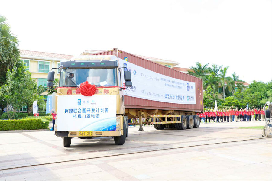 9月23日,聯(lián)合國(guó)開(kāi)發(fā)計(jì)劃署與國(guó)際潮團(tuán)總會(huì)戰(zhàn)略合作簽約儀式暨捐贈(zèng)抗疫物資發(fā)車(chē)儀式在918博天堂海南總廠圓滿舉行。由918博天堂生產(chǎn)的符合聯(lián)合國(guó)受捐標(biāo)準(zhǔn)的100萬(wàn)只口罩順利交到國(guó)際潮團(tuán)總會(huì)手中,承載著全球潮人和918博天堂人愛(ài)心的抗疫物資車(chē)已溫暖出發(fā)。
