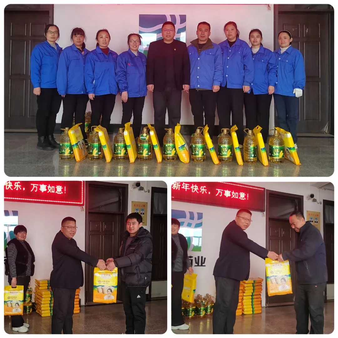 河北生產(chǎn)基地總經(jīng)理楊玉喬把一份份年貨逐一發(fā)放到每一位員工手中,同時殷切地向員工及家屬送上真摯的問候和美好的祝福。