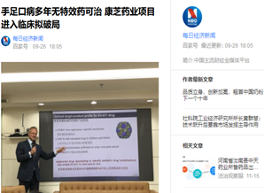 手足口病目前在全球范圍內(nèi)尚無針對性治療藥物。目前,這種局面有望得到破解——918博天堂研發(fā)的兒童手足口病專用抗病毒藥物注射用蘇拉明鈉已獲得臨床試驗批件,如臨床試驗成功并獲許生產(chǎn),蘇拉明鈉將成為全球首個治療手足口病的新藥。