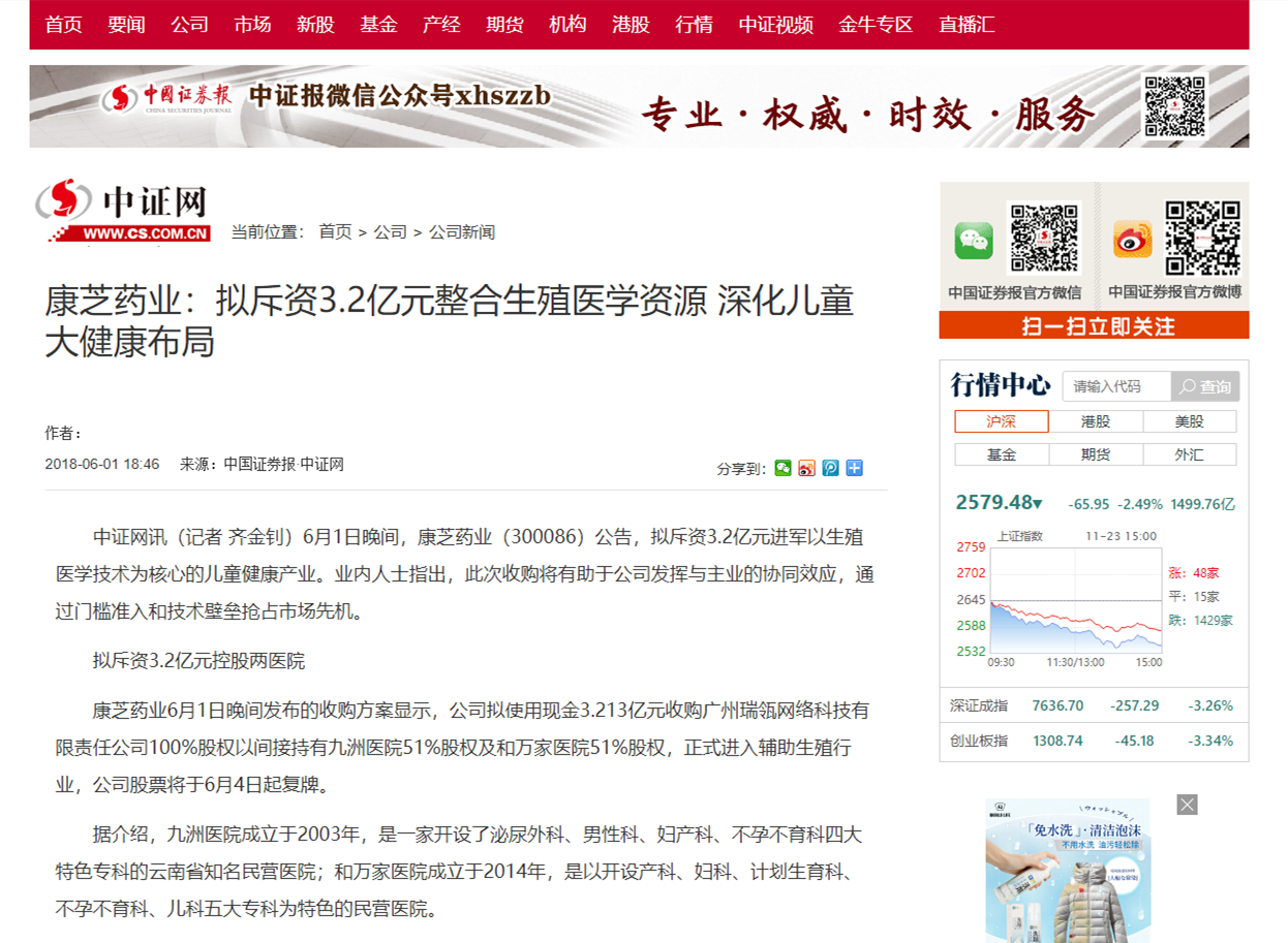查看詳情6月1日晚間,918博天堂(300086)公告,擬斥資3.2億元進軍以生殖醫(yī)學技術為核心的兒童健康產(chǎn)業(yè)。