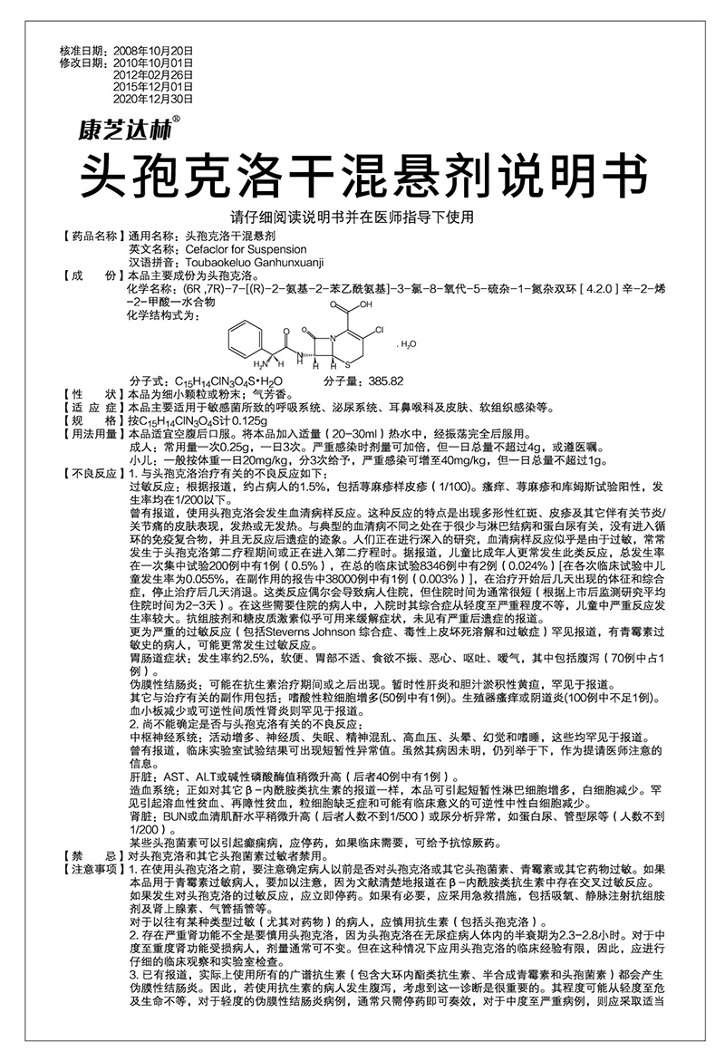頭孢克洛干混懸劑