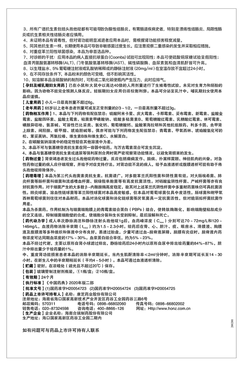 1.1.0g*10瓶; 2.國家基藥,醫(yī)保目錄; 3.第三代頭孢菌素。